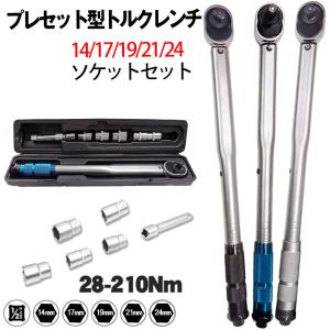 トルクレンチ タイヤ交換 専用ハードケース付き プレセット型 ホイール交換28-210N・m 14/17/19/21/24/ソケットセット 延長アダプタ ラチェット 取付簡単