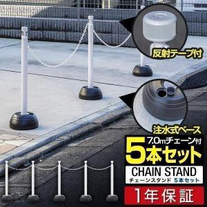 1年保証 駐車場ポール 車止めポール 5本セット 7mチェーン チェーンスタンド 反射テープ付き 駐車禁止 立入禁止 フェンス 仕切り 外設備 庭 玄関 送料無料