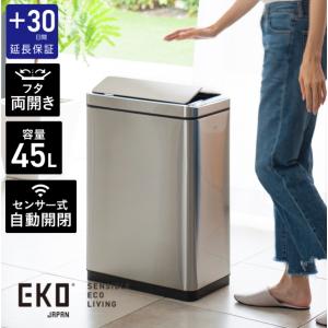 【プラス30日延長保証】EKO ゴミ箱 45L 自動開閉 ふた付き おしゃれ 静音 デラックスファントム 縦型 ステンレス シルバー