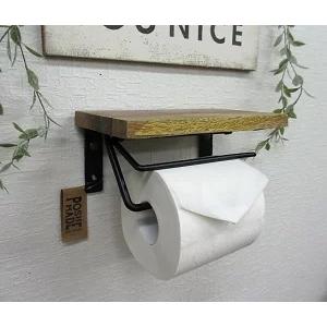 アイアン×木製 トイレットペーパーホルダー シングル ブラック 41282 押さえ金具付きシェルフ型/カントリー雑貨