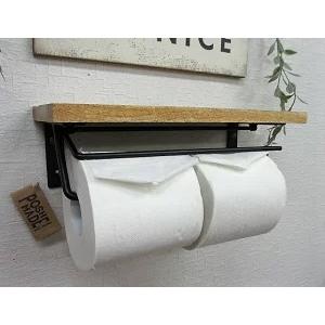 アイアン×木製 トイレットペーパーホルダー ダブル ブラック 41283 押さえ金具付きシェルフ型/カントリー雑貨