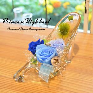 プリザーブドフラワー プレゼント 誕生日 結婚祝い 記念日 花 ギフト ガラスの靴 シンデレラハイヒール 3輪バラ ブルー