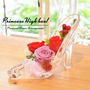 プリザーブドフラワー 母の日 プレゼント 結婚祝い 記念日 花 ギフト ガラスの靴 シンデレラハイヒール ピンクカーネーション&赤バラ