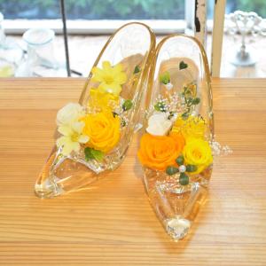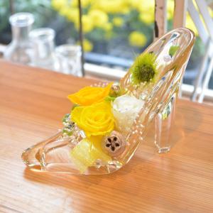 プリザーブドフラワー プレゼント 誕生日 結婚祝い 記念日 花 ギフト ガラスの靴 シンデレラ プリンセスハイヒール (ペア) イエロー