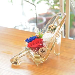 プリザーブドフラワー プレゼント 誕生日 結婚祝い 記念日 花 ギフト ガラスの靴 シンデレラハイヒール 3輪バラ レッド&ブルー