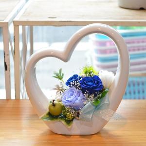 プリザーブドフラワー プレゼント 結婚祝い 花 ギフト ハート型デザイン陶器 4輪バラ アレンジメント ブルー