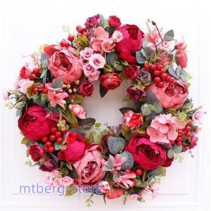 クリスマスリース 40cm ドアリース クリスマス花輪 オーナメント 玄関 庭園 部屋 壁飾り ガーランド バラ 人工造花 飾り デラックスリース 北欧風 壁掛け