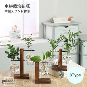 水耕栽培花瓶 木製スタンド付き インテリア小物 置物 花瓶 丸型 ガラス瓶 シンプル 創造的 木製フレーム 水耕栽培ポット 水耕フラワーケース 植物テ
