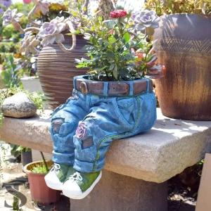 【並行輸入品】1個 ジーンズ パンツ型 フラワーポット レジン スタチュー 多肉植物用 ポット フラワー プランター 屋内 ガーデン ヤード 芝生 ポー