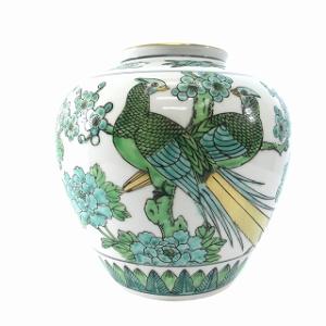 有田焼 秀峰 花瓶 花器 壺 雉 梅の花 金彩 白 ホワイト エメラルドグリーン その他