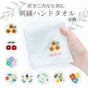 ハンドタオル 【名入れ無料】 [刺繍ハンドタオル-ボタニカルと共に-] エチケット 可愛い 刺繍 入り ワンポイント プチギフト 贈り物 パイル地 ふんわり