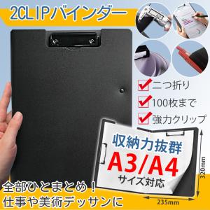 バインダー ファイル A3 A4 対応 兼用 100枚 収納 可能 二つ折り ダブル クリップ フォルダ 書類 整理 会議 授業 美術 デザイン 紙 プリント デッサン FARUDA