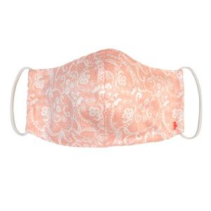 マスク 布製 送料無料 レースプリント サーモンピンク