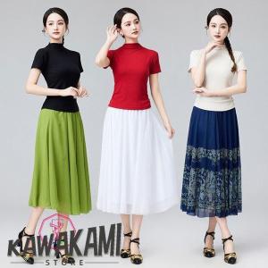 古典ダンス衣装 上下セット 半袖トップス ハイネックダンス スカート ロング丈 民族風 広がる 大きい裾 フレア 大人 花柄 レッスン着 鮮やか エスニック 民族ダ