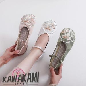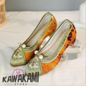 パンプス レディース中華刺繍シューズ 布靴 チャイナ靴 刺繍布靴 シューズ 花刺繍 アーモンドトゥ ローヒール 手作り北京布靴 民族風 中華靴 歩きやすい 疲れな