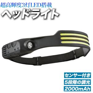 LEDヘッドライト 充電式 センサー付き 軽量 USB充電 2000mAh 5段階調光 高輝度 登山 キャンプ 夜釣り 作業灯 防災 アウトドア