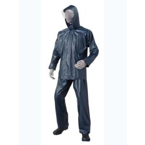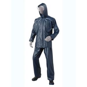 喜多(KITA)/NO2000-NV-XL/PVCレインコート (ネイビー) XLサイズ 上下セット クリアフード ポケット付 二重袖