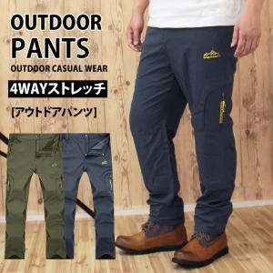 アウトドアパンツ メンズ クライミングパンツ カーゴパンツ キャンプ 登山 4WAYストレッチ ウエストゴム ハイキング 通気 アウトドアウェア 薄手 春夏