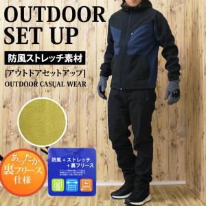 アウトドアウェア セットアップ 上下セット メンズ ジャケット アウター マウンテンパーカー ストレッチ裏起毛フリース防寒防風保温 ハイキング登山キャンプ秋冬
