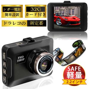 爆買 即納 ドライブレコーダー 高画質 2.2インチ 32Gカード付 ループ録画 広角視野 コンパクト シガー電源 あおり運転 防犯 軽量 駐車監視 プレゼント