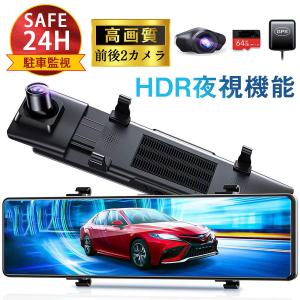 爆買 新登場 ドライブレコーダー 12インチ ミラー タッチパネル 4K 前後カメラ 64Gカード付 高解像度 GPS搭載 170度広角視野