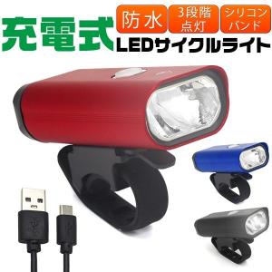 LEDサイクルライト USB充電式 防水 3段階点灯 シリコンバンド まぶしさ軽減