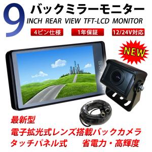 9インチ バックミラーモニター バックカメラセット 4ピン仕様 12/24V対応 大型車 トラック 車載 後方 広角 20m延長ケーブル付き
