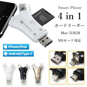 スマホ SD カードリーダー SDカード カメラリーダー 4in1 iPhone Android iPad Mac に対応 TypeC micro SD 写真 高速 バックアップ データ転送 画像