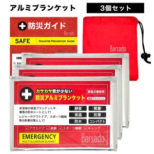静音 アルミシート 防災笛 防災ガイド/収納袋付 防災グッズ 3個セット カサカサ音が少ない アルミブランケット エマージェンシーシート 大音量 笛 ホイッスル