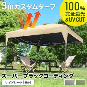 テント 3m 遮光 タープテント サイドシート付 1枚 日除け タープ ブラックコーティング 3m×3m ワンタッチテント 簡単 自立式 ワンタッチ