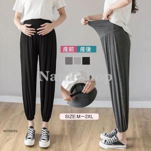 マタニティパンツ スラックス 夏 マタニティウエア 妊婦 ハイウエスト 九分丈 ゆったり らくちん ジョガーパンツ 妊婦服 妊娠 サルエル 薄手