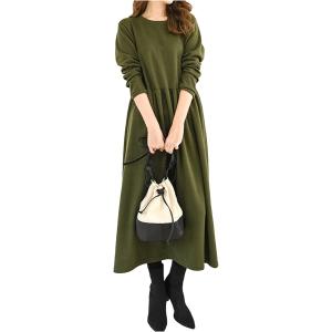 ワンピース レディース ルームウェア マキシ丈 冬 大きいサイズ(カーキ, Free Size)