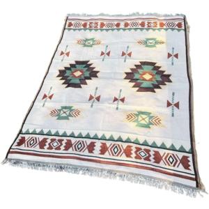 エルパソ ブランケット マルチ ラグ オルテガ柄 エスニック ボヘミアン 薄い 軽い 絨毯 年中使える(D, 180cmx130cm)