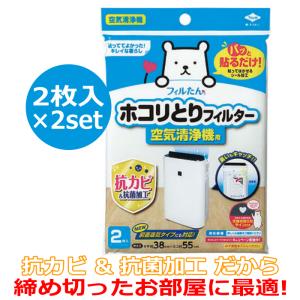 (2枚入 × 2セット) パッと貼るだけ ホコリとりフィルター 空気清浄機用 抗カビ 抗菌加工 約38cm×約55cm 背面吸気 前面吸気対応 空気清浄機フィルター