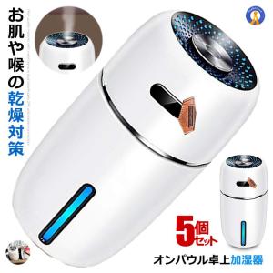 5個セット 加湿器 卓上 ホワイト アロマ 超音波式 車 除菌 七色 LED ライト 小型 空気 浄化 オフィス 乾燥 花粉症 対策 コンパクト USB給電 ONAPAURU-WH