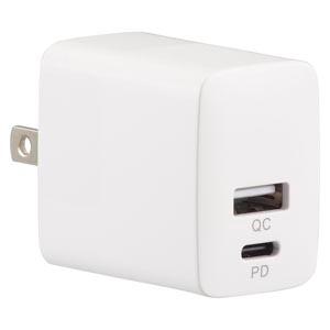 オーム電機 MAV-AQP20W-W AC充電器 PD対応Type-C+QC対応Type-A