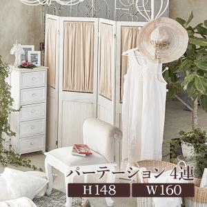間仕切り パーテーション 4連 衝立 カーテン付き 木製 シャビーウッドファニチャー 仕切り 目隠し