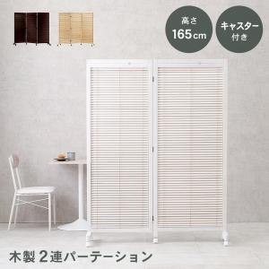パーテーション 間仕切り 衝立 おしゃれ 木製 桐材 2連ルーバー キャスター付き 幅126cm 高さ165cm