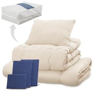 アイリスプラザ すぐ使える布団9点セット ダブル 抗菌防臭 すっきり収納ケース付き しっとりなめらかピーチスキン加工 (掛け布団 敷布団 枕 各