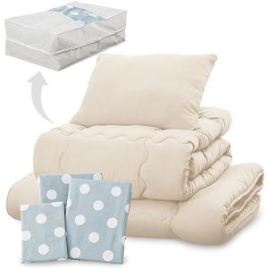 アイリスプラザ すぐ使える布団7点セット シングル 抗菌防臭 すっきり収納ケース付き しっとりなめらかピーチスキン加工 (掛け布団 敷布団 枕