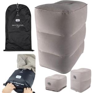 フットレスト 空気入れ40秒で完了 飛行機 軽量設計 快適グッズ ポンプ不要 足枕 簡単 機内 車 エアークッション(グレー)