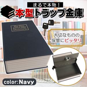 金庫 本型 辞書 辞典 ダミー バレない 小型 薄型 コンパクト 家庭用 鍵付き キー式 貴重品 持ち運び 持ち歩き 携帯 スリム ばれない 保管 おしゃれ ネイビー 紺