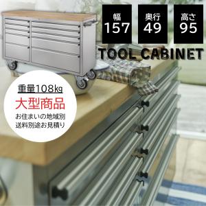 【別途追加実費送料】ツールキャビネットAZ-TC157M ステンレス 天然木 天板付き 幅157cm ガレージ 工具収納 作業台 【メーカー直送】実費送料かかります