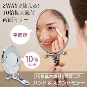 10倍拡大鏡付きスタンドミラー 黒 A-02 卓上鏡 卓上ミラー 両面 ミラー スタンドミラー 鏡 10倍 拡大鏡 顔全体 メイク 眉毛 チェック