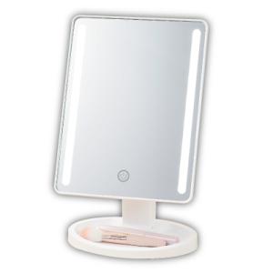 LEDライティングミラー スクエア 卓上ミラー 卓上鏡 鏡 卓上 LED LEDライト 調光 メイク道具 回転ミラー コスメミラー メイクミラー 化粧ミラー