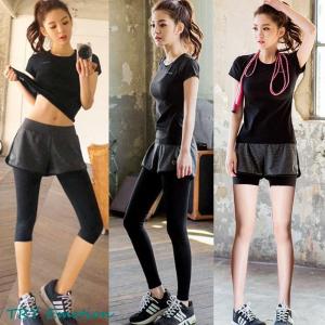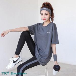 ヨガ スポーツウェアセット 女性 夏 プラスサイズ ゆったり 速乾性ウェア ランニングウェア 3点セット