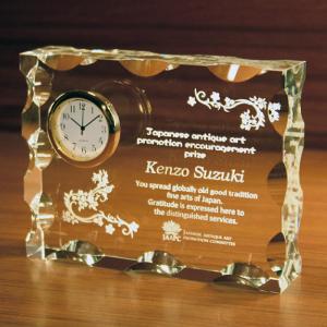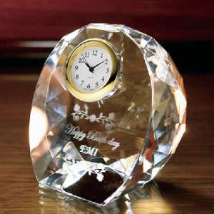 名入れ クリスタル クロック 2Dインサイドレーザー加工 ダイヤカットアーチ時計 オリジナル 記念品 刻印