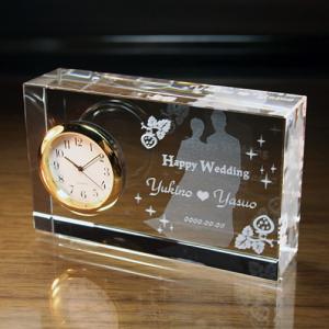 名入れ クリスタル クロック 2Dインサイドレーザー加工 カットスクエア時計 オリジナル 記念品 刻印