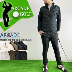 ゴルフウェア メンズ セットアップ 秋冬 エコダウン ゴルフウェア 中綿×スウェット スタンドブルゾン イージーパンツ 裏起毛/爆買