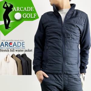 ゴルフウェア メンズ 秋冬 ゴルフウェア スタンドブルゾン 裏地フリース 中綿×スウェット エコダウンジャケット/爆買